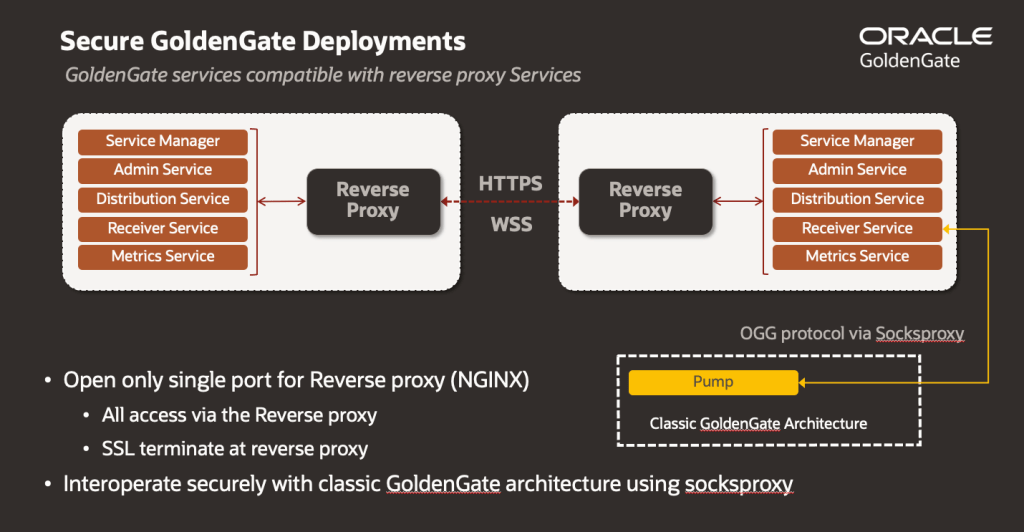 Microservices architecture: The modular structure enables Distribution Server (PUMP replacement), Extract, and Replicat to scale independently to meet different workloads. In contrast, Classic’s monolithic architecture requires scaling the entire system.