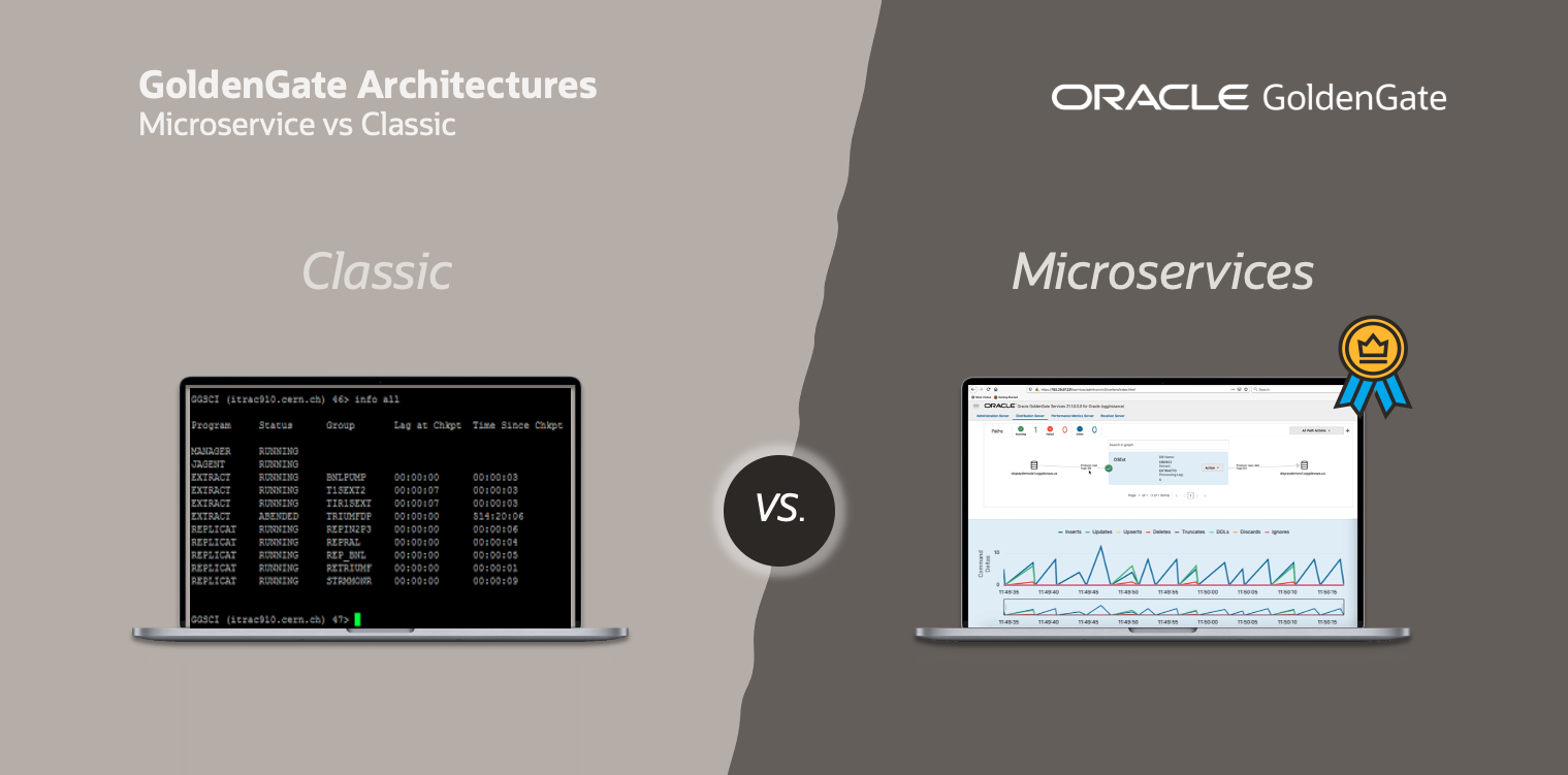 RESTful API: Using web pages, the command line, and APIs, Microservices offers a modern, programmatic interface for administration, configuration, and monitoring. Compared to the file-based configuration of Classic, this facilitates automation and streamlines administration. To me, the REST is the best feature in GoldenGate Microservices compared to Classic.