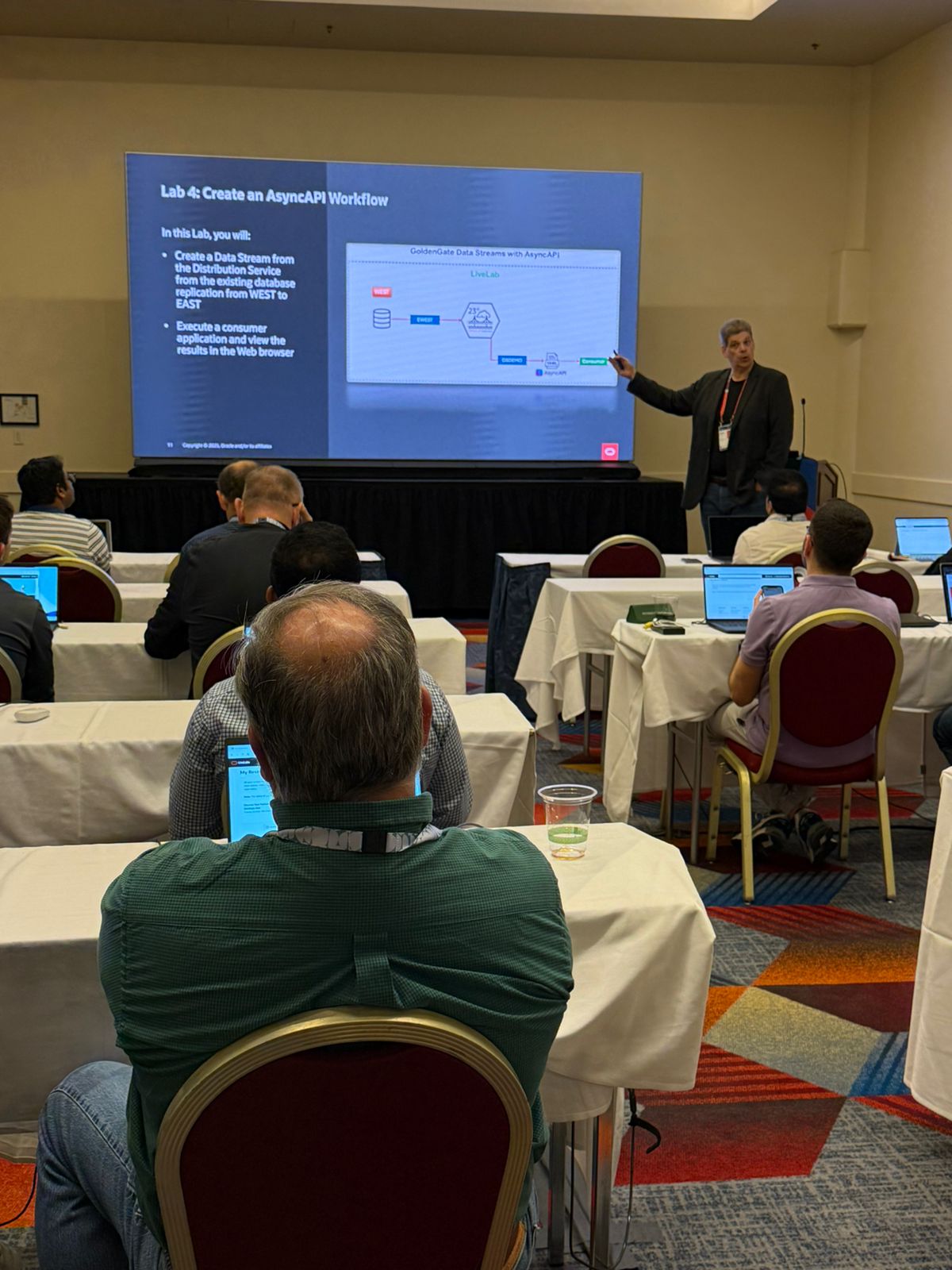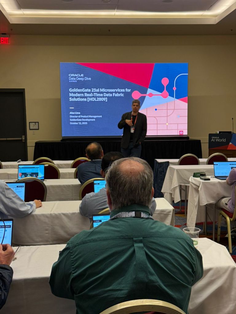 At 11 a.m., it was time for my Hands-On Lab session, and to my surprise, it was completely full, with attendees even standing in the back. We guided participants through GoldenGate configuration, management, and patching using the web UI and REST APIs. The feedback was overwhelmingly positive, especially about how simple patching has become in the 23ai release. Many attendees were amazed to learn that the same process can be automated end-to-end through APIs.