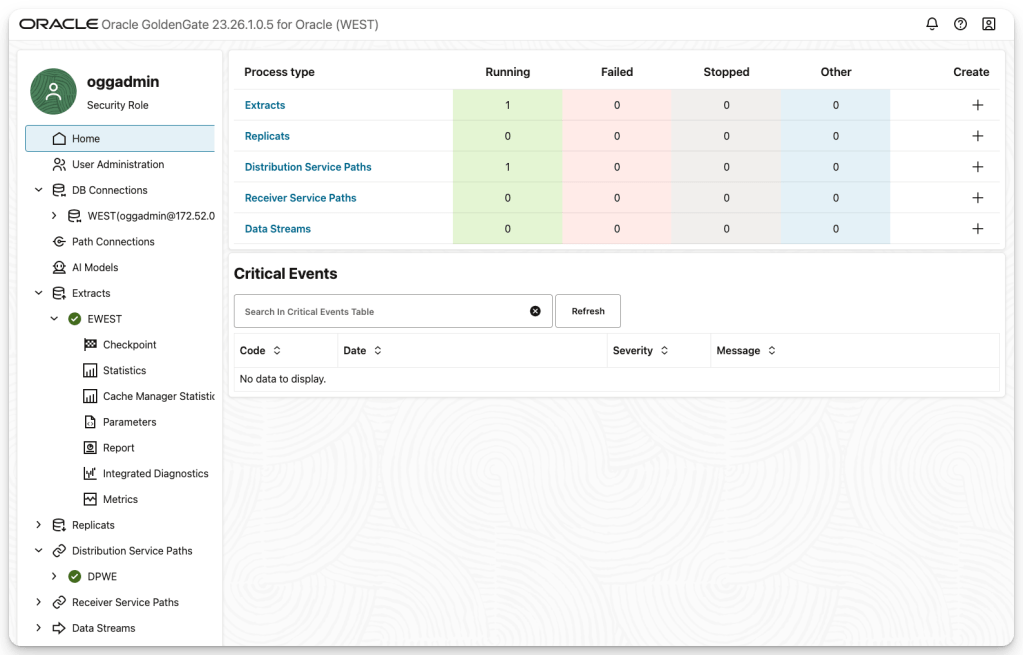 GoldenGate WEST → https://localhost:9090 (oggadmin / Welcome##123)